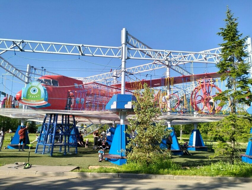 Интересный веревочный городок для детей, больше всего понравился самолет-лабиринт наверху. Есть где посидеть. Аниматорам Маше и Любе отдельное спасибо!